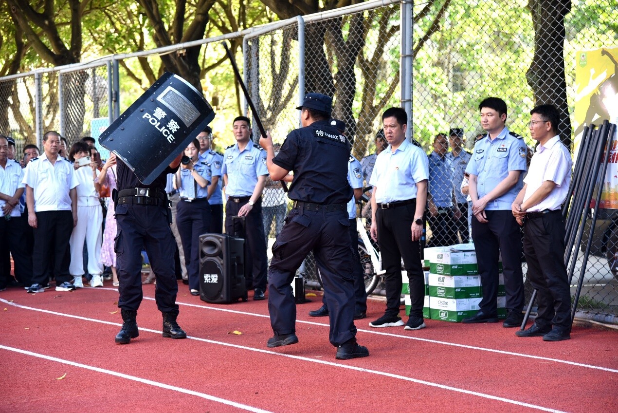 為全力做好校園安保工作,進一步提高校園保安和最小應(yīng)急單元應(yīng)急處置能力和水平,切實保障廣大師生的身體健康和生命安全,7月13日,龍湖區(qū)教育局聯(lián)合龍湖公安分局在林百欣中學開展校園保安員和最小應(yīng)急單元應(yīng)急處置實戰(zhàn)培訓(xùn)。龍湖公安分局、區(qū)教育局有關(guān)領(lǐng)導(dǎo)出席會議并講話,龍湖公安分局各職能部門、各派出所有關(guān)同志,全區(qū)中小學、幼兒園安全負責人及全體保安員參加了培訓(xùn)。