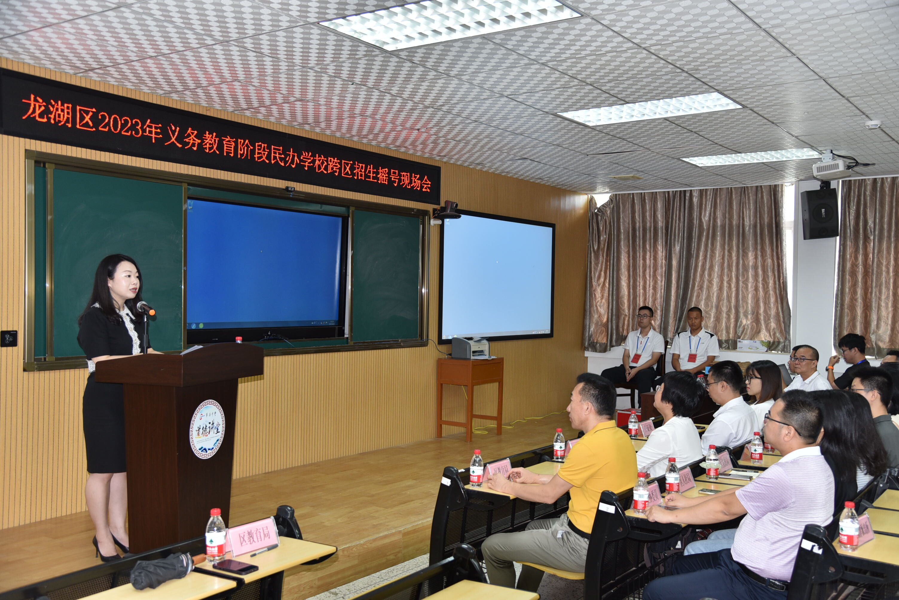 8月1日上午,龍湖區招生工作領導小組在翠英中學舉行2023年義務教育階段民辦學??鐓^招生搖號現場會,對報名人數超過跨區招生計劃數的龍湖區碧華實驗學校采用電腦隨機搖號方式進行跨區招生錄取。