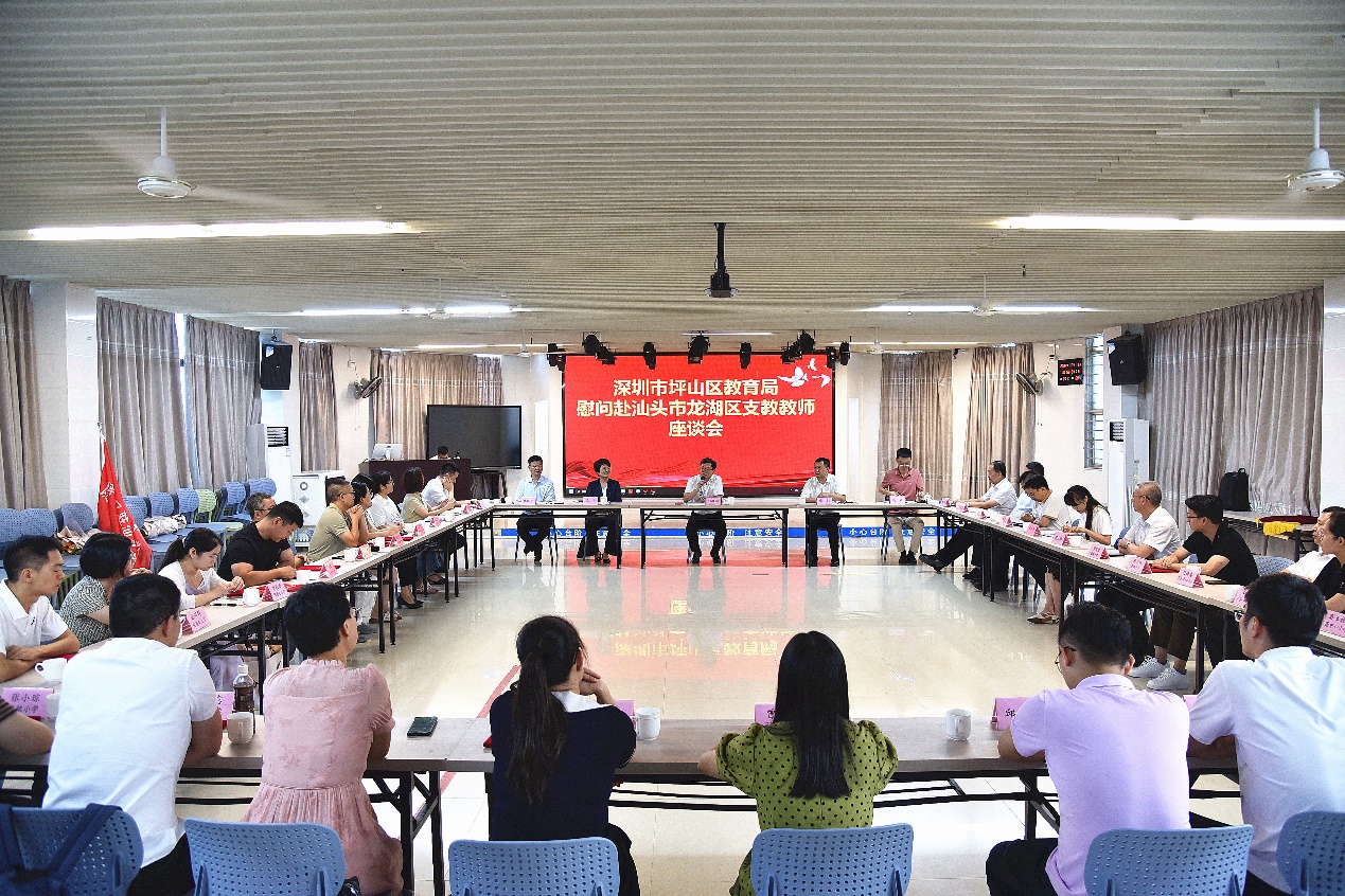 當(dāng)天下午,坪山區(qū)教育局和龍湖區(qū)教育局在龍湖區(qū)教師發(fā)展中心聯(lián)合舉辦了中小學(xué)青年教師綜合素質(zhì)提升專項培訓(xùn)。坪山區(qū)教育局一行還走訪調(diào)研了汕頭市新溪第一中學(xué),并在該校舉行了“深圳市坪山區(qū)教育局慰問赴汕頭市龍湖區(qū)支教教師座談會”。