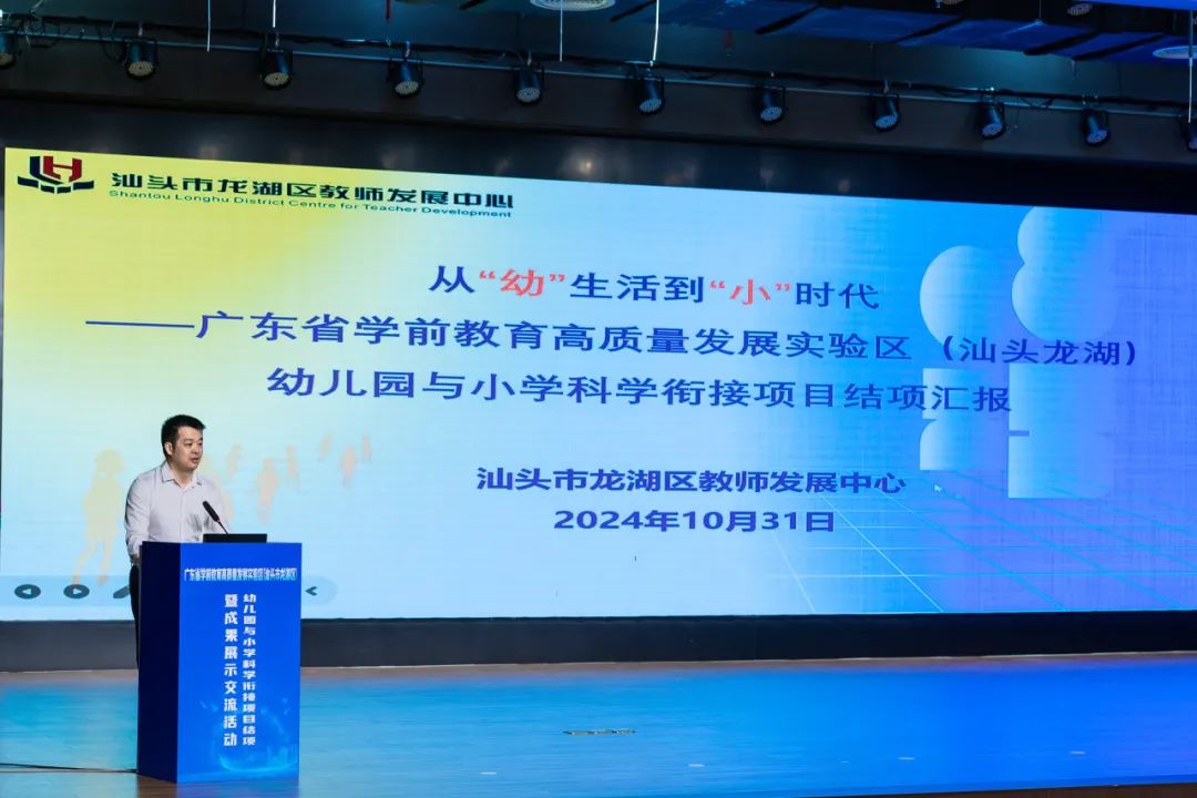 為貫徹落實《廣東省教育廳關于做好學前教育高質量發展實驗區結項工作的通知》要求,加強試點實踐經驗的推廣和交流,10月31日,“廣東省學前教育高質量發展實驗區(汕頭市龍湖區)幼兒園與小學科學銜接項目”結項暨成果展示交流活動在龍湖區教師發展中心舉行。