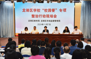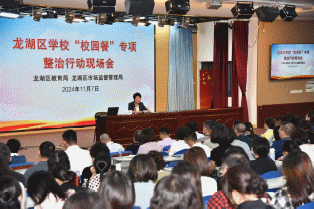 為進一步做好我區學校“校園餐”專項整治行動有關工作,11月7日,龍湖區在蓬鷗中學召開學校“校園餐”專項整治行動現場會。區教育局有關領導,市、區兩級市監局相關領導,區紀委監委第四派駐紀檢監察組負責同志,全區各配設有供餐服務的學校校長、幼兒園園長參加會議。