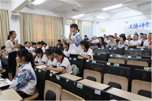 對下來學校思政課建設如何有效開展,王曉韓常委從內容、維度、方法、職責等四個方面進行闡述。第一,思政課要講什么?就是要講好習近平新時代中國特色社會主義思想,加強學生愛國主義教育,培養社會主義核心價值觀,樹立理想追求;要傳播科學新知;要學生歷練品德修為。第二,思政課在哪里講?思政課建設不僅僅在課堂,學校要應該以課堂為主陣地,拓寬渠道,營造育人氛圍,涵養學生;要有制度體現,將升旗儀式、志愿者服務等教育常態化、制度化;要有文化融入,如科技節、讀書節、社團活動等,潛移默化,潤物無聲;同時拓寬校外實踐以及線上線下活動。第三,思政課怎么講?學校老師要認真學習貫徹習近平總書記在思想政治理論課建設座談會上提出的“八個統一”,做到言傳加身教,以高尚的人格魅力影響學生,采用“滴灌式”教育方式,將情感交流與理論傳播相結合。第四,思政課誰來講?思政課不僅由學校政治老師來講,學校黨組織、行政干部、全體老師都有責任做好學生思想政治教育工作,通過以點帶面、以上帶下,以教師影響學生,以學生影響家庭,以家庭促進社會風氣。王常委還要求學校要積極創造條件,完善機制,落實保障,確保學校思政課理論建設有效開展。