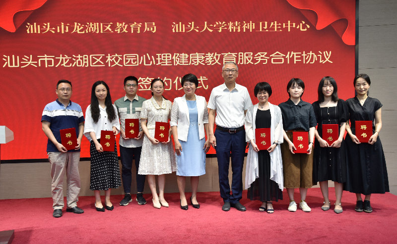 儀式上,區教育局與汕頭大學精神衛生中心簽訂了《汕頭市龍湖區校園心理健康教育服務合作協議》。區政府、區教育局有關領導向汕大精神衛生中心八位專家頒發了“龍湖區校園心理健康指導員”聘書。隨后區教師發展中心相關領導宣讀了成立“龍湖區中小學心理健康教育學科中心教研組”的相關文件。