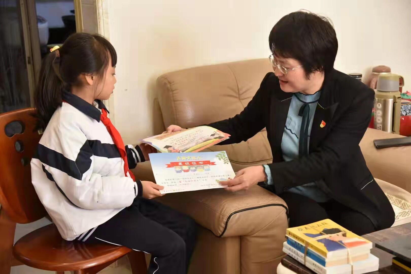 王局長(zhǎng)向?qū)W生們贈(zèng)送了“愛心書籍”,親切地鼓勵(lì)孩子們與書為伴,在閱讀中堅(jiān)定文化自信。孩子們也暢所欲言,紛紛拿出了自己的獎(jiǎng)牌和獎(jiǎng)狀,向領(lǐng)導(dǎo)和老師們匯報(bào)自己的生活和學(xué)習(xí)情況。整個(gè)家訪過程氣氛輕松愉快。