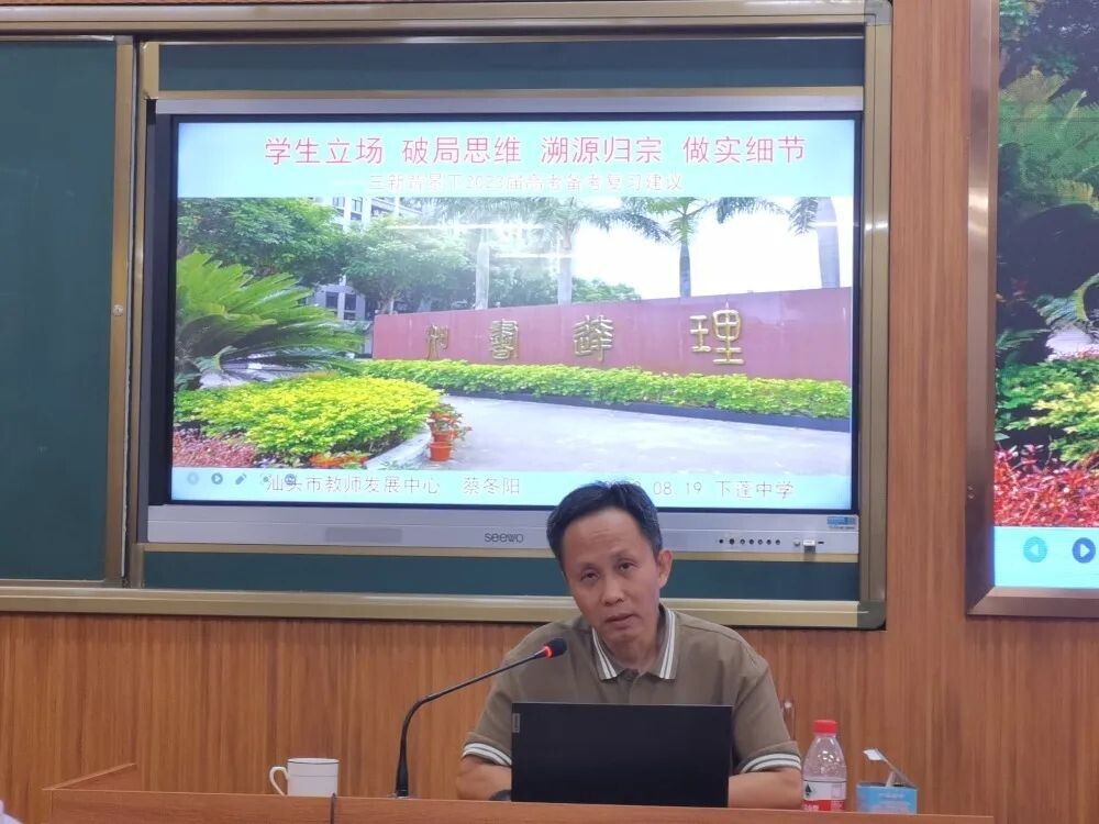 819日下午,下蓬中學承辦汕頭市2022年高考物理學科總結研討會。會議主要內容有三個,一是總結2022年高考物理備考情況,二是研討部署2023屆物理學科高考備考工作,三是下蓬中學林璟老師公開課活動。