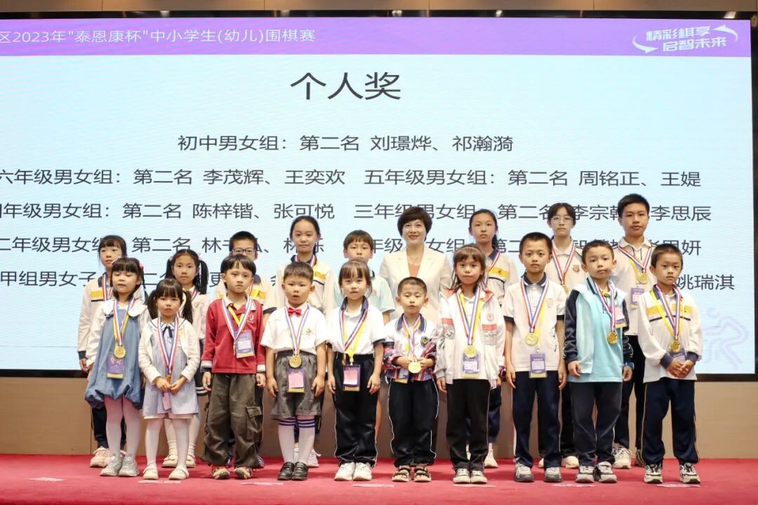 11月11日至12日,由龍湖區(qū)教育局主辦,汕頭圍棋協(xié)會(huì)、潮汕棋院承辦,廣東泰恩康醫(yī)藥股份有限公司、龍?zhí)┬W(xué)協(xié)辦的龍湖區(qū)2023年“泰恩康杯”中小學(xué)生(幼兒)圍棋賽在龍湖區(qū)龍?zhí)┬W(xué)舉行。區(qū)教育局局長(zhǎng)王玲、副局長(zhǎng)劉啟揚(yáng),區(qū)教師發(fā)展中心主任李岱玲,龍泰小學(xué)校長(zhǎng)陳少娜、汕頭市圍棋協(xié)會(huì)常務(wù)副會(huì)長(zhǎng)兼秘書長(zhǎng)蔡建鵬等有關(guān)同志參加閉幕式并為獲獎(jiǎng)單位和選手頒獎(jiǎng)。