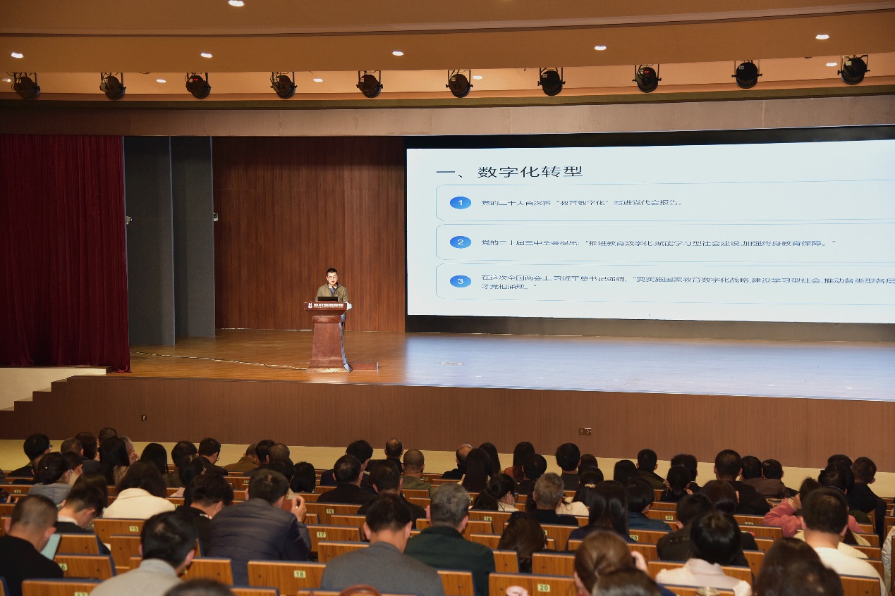 會上,市教師發展中心教研員楊老師以“數智賦能促轉型 項目融創探新程”為主題,作教學資源應用普及培訓。楊老師梳理教育數字化轉型的脈絡,分析新型基礎設施重點方向,引導如何合理科學推進國家中小學智慧教育平臺全域全員全流程應用,倡導各校積極獲取、篩選與創新應用優質教學資源,要求高度重視平臺的應用、合理引導師生使用、融合項目資源活用、探尋師生優秀運用。