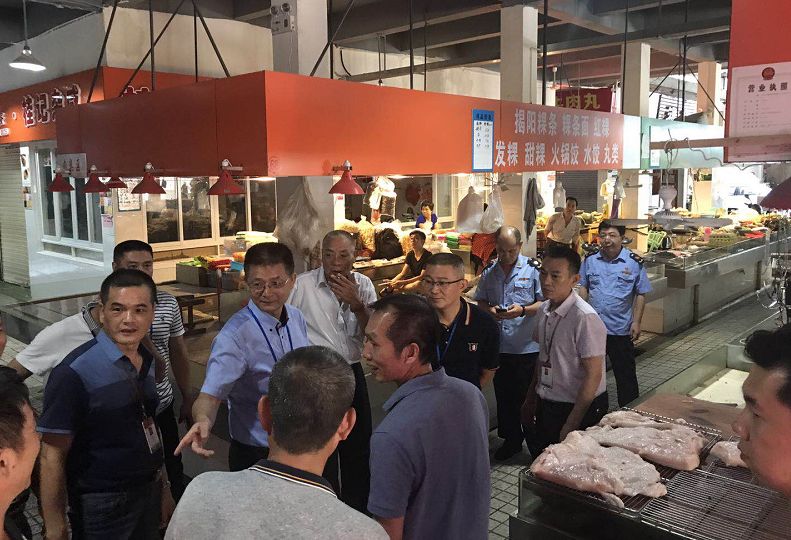 督查組一行在春湖市場發現市場外下水道堵塞,珠合市場存在占道經營,垃圾隨意丟棄,且未及時密閉收集,影響市場的規范化經驗和衛生整潔,在佳和市場發現熟食攤檔三防設施形同虛設,衛生環境較差,食品安全存在較大隱患的問題。