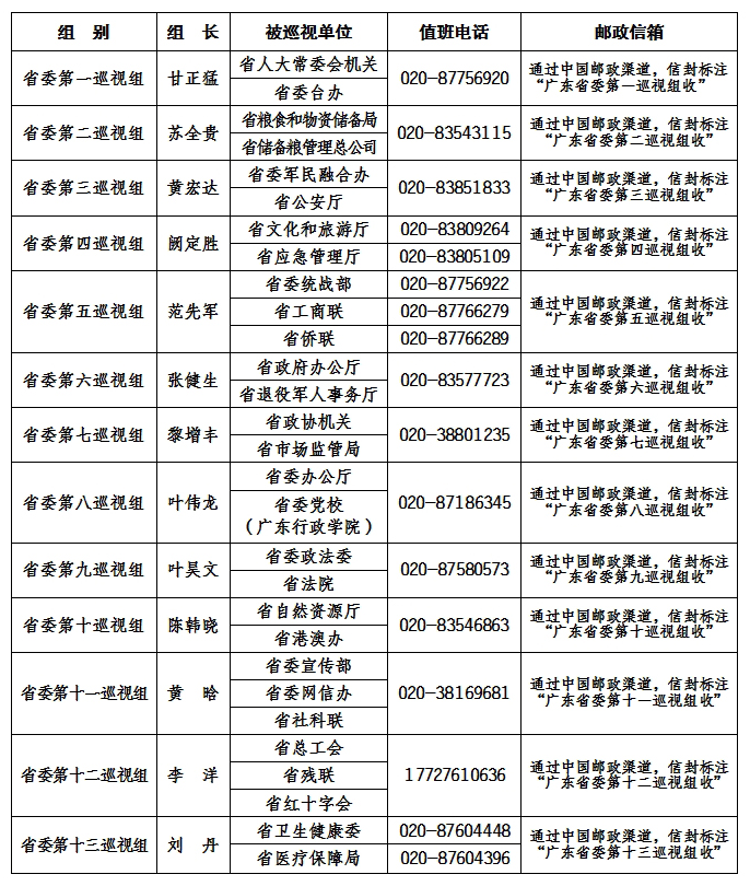 據了解,13個省委巡視組將在被巡視單位工作2個月左右,期間設立專門值班電話和郵政信箱,主要受理反映被巡視黨組織領導班子及其成員、下一級黨組織領導班子主要負責人和重要崗位領導干部問題的來信來電來訪,重點是關于違反政治紀律、組織紀律、廉潔自律、群眾紀律、工作紀律和生活紀律等方面的舉報和反映。