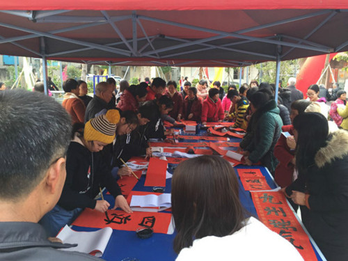 活動現場組織開展了計生廣場舞歌曲表演和計劃生育政策、流動人口服務管理等法律咨詢服務;在現場開展婦女維權宣傳、消防安全生產宣傳,健康扶貧和創文強管等法律政策宣傳?,F場還開展送春聯活動,外砂書法協會的書法家們和學生們現場揮灑筆墨,將一幅幅帶著美好祝福的春聯送到群眾手中。燈謎臺吸引了眾多燈謎愛好者的參與,鼓聲陣陣,禮品不斷,很是熱鬧,把現場氣氛一次次推向高潮。據統計,本次活動共發放政策法規等宣傳資料1000多份,為群眾送去春聯300多幅。
