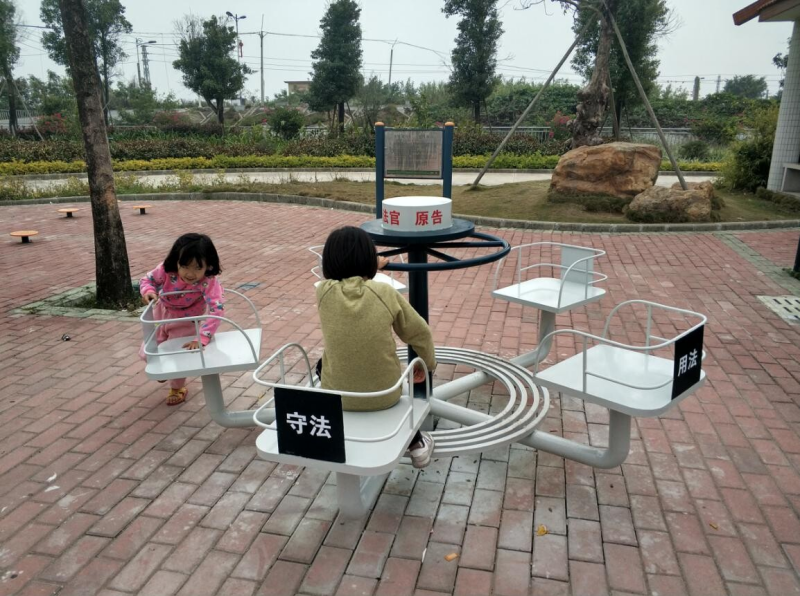 其中設置了包括法治文化主題標識、LED法治宣傳屏、憲法長廊、法治宣傳欄、法治文化景觀、法治文化游戲設施、公共法律服務標識指引(包括“12348”公共法律服務熱線、“12348廣東法網”二維碼、汕頭市掌上公共法律服務平臺二維碼、 “汕頭法院”微信公眾號二維碼、“汕頭微法院”微信小中程序二維碼)等8大類近50件各具特色、各有寓意的群眾性法治文化景觀設施。