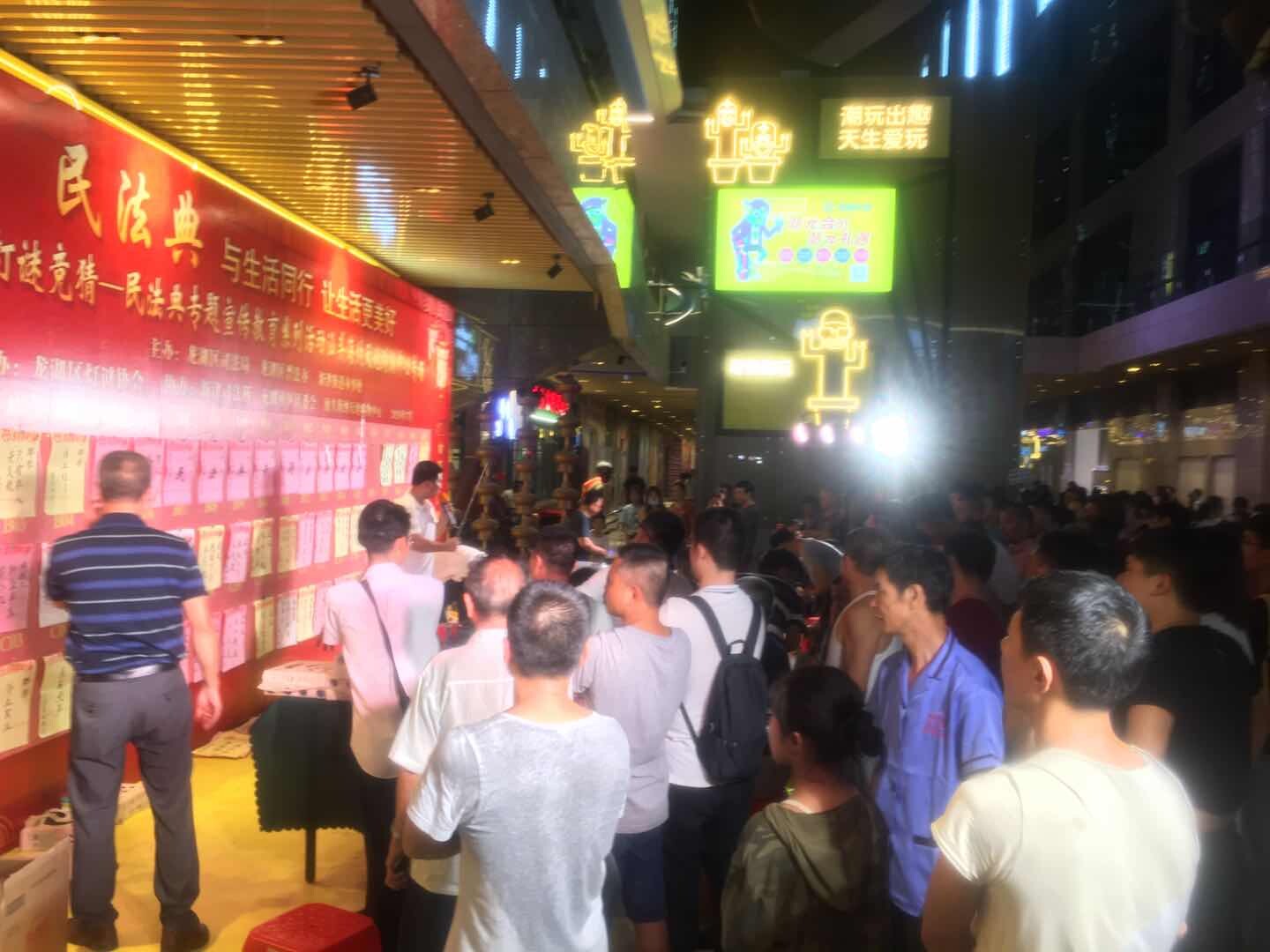 為豐富企業員工、社區居民、外來務工人員的夜文化生活,進一步向廣大人民群眾宣傳民法典,切實讓民法典走到群眾身邊,走進群眾心里,7月25日晚,龍湖區司法局、區普法辦聯合新律街道、龍湖區燈謎協會在汕頭海納天地購物中心地攤廣場舉行了以“民法典,與生活同行,讓生活更美好”為主題的法治燈謎競猜暨民法典專題宣傳教育活動。