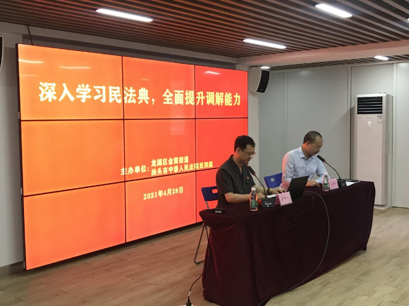 講座邀請了汕頭中院民四庭四級高級法官江炯坤進行專題解讀。江法官重點向參會人員介紹了《中華人民共和國民法典》有關條款和人民調解中常用的技巧,結合自身工作經歷,運用真實案例,講述了人民調解、行政調解、司法調解相結合的重要意義、調解基本法律知識、調解的方法技巧和經驗等,授課內容通俗易懂、貼近實際、可操作性強。