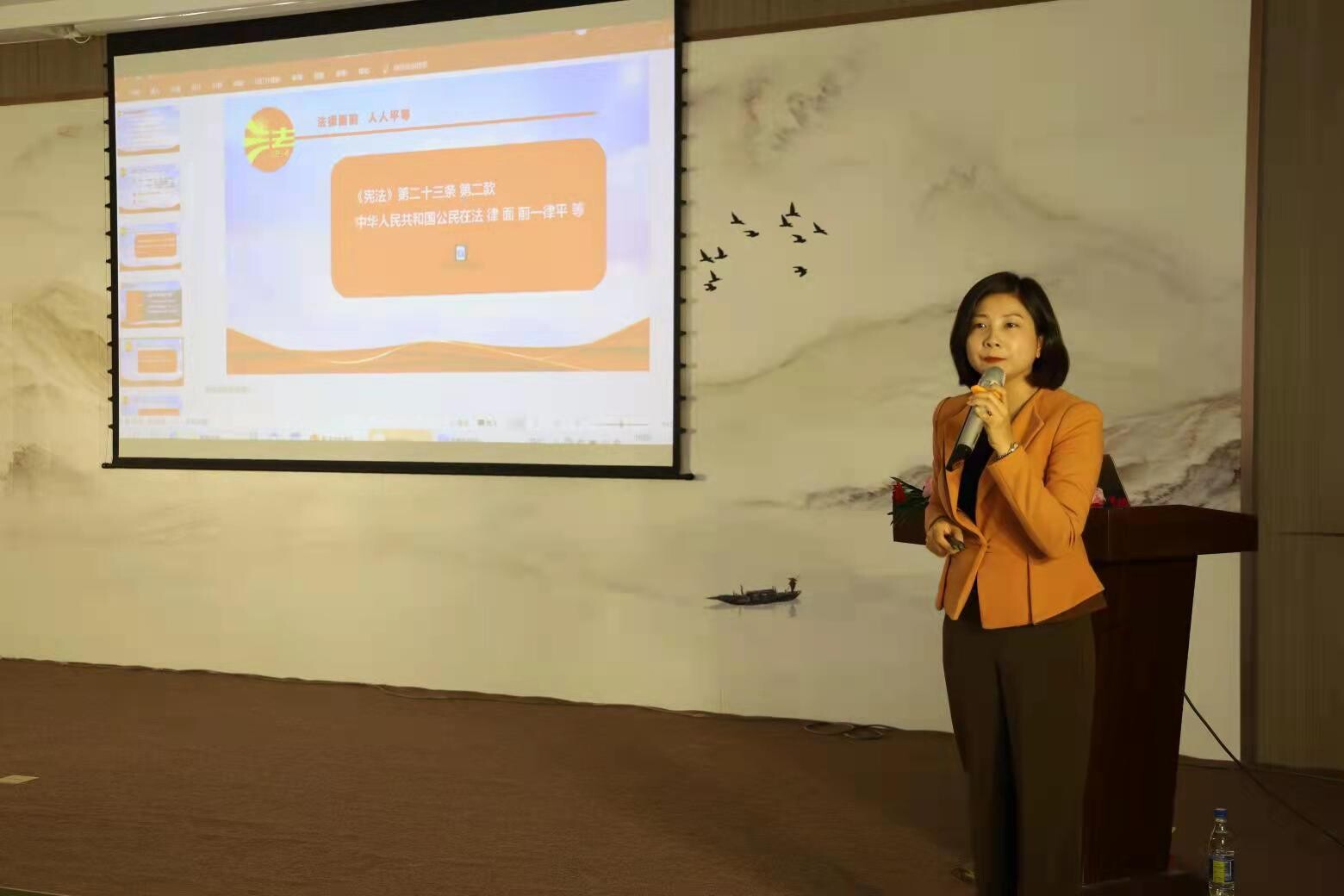 活動開始由區普法辦向嘉晉學校贈送了《中華人民共和國憲法》和《中華人民共和國民法典》宣傳圖冊,接著由嘉晉學校法治副校長——廣東汕僑律師事務所張曉敏律師為師生們授課,張律師用生動的語言以及通俗易懂的例子很好的詮釋了憲法的相關條例內容。