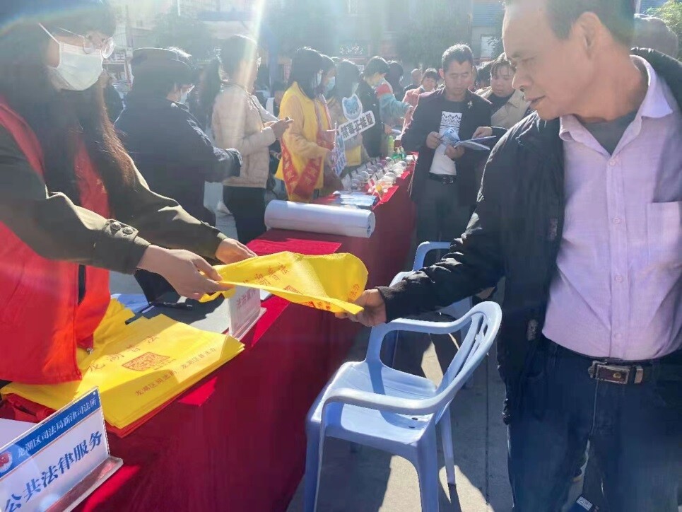 為深入學習貫徹習近平法治思想,進一步弘揚憲法精神,推動憲法進萬家,根據(jù)中央、省、市、區(qū)“12·4”國家憲法日暨憲法宣傳周的部署安排,龍湖區(qū)開展2021年“12·4”國家憲法日國家憲法日暨憲法宣傳周系列活動。一是開展憲法宣傳主題活動。2021年12月3日上午,區(qū)委政法委、區(qū)委依法治區(qū)辦、區(qū)文明辦、區(qū)普法辦、區(qū)司法局等14個單位聯(lián)合在新津街道南碧埠社區(qū)開展2021年“12·4”國家憲法日國家憲法日暨憲法宣傳周主題活動。