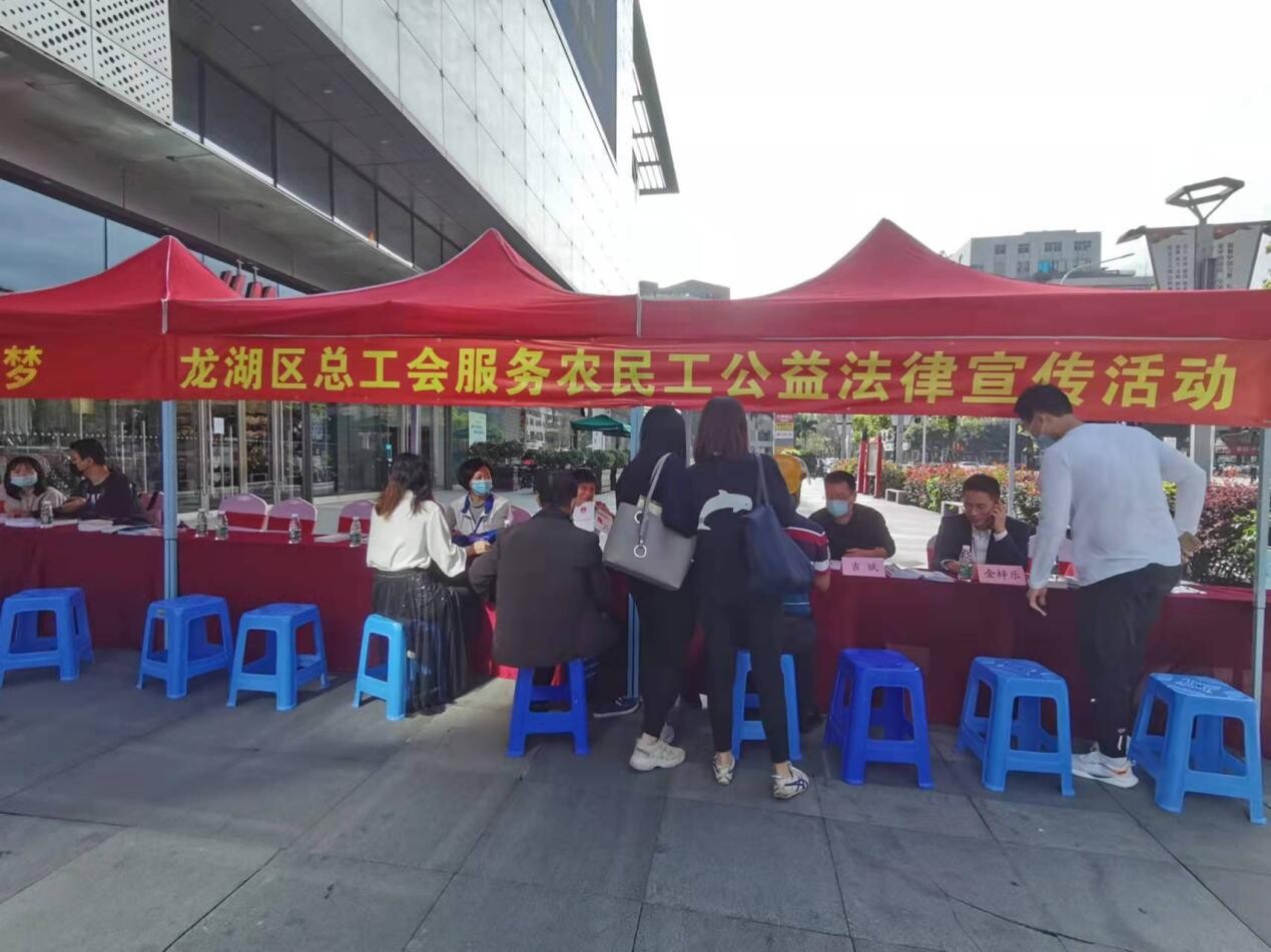 為貫徹落實全國總工會“尊法守法?攜手筑夢”服務農民工公益法律服務行動要求,結合能力作風提升年活動要求,深入推進“我為群眾辦實事”活動,引導農民工尊法、學法、守法、用法,進一步做好新形勢下農民工維權服務工作,切實維護農民工的合法權益,促進勞動關系和諧和社會穩定,2022年3月31日下午,區司法局與區總工會、區人社局在蘇寧廣場聯合開展“尊法守法?攜手筑夢”服務農民工公益法律宣傳活動。