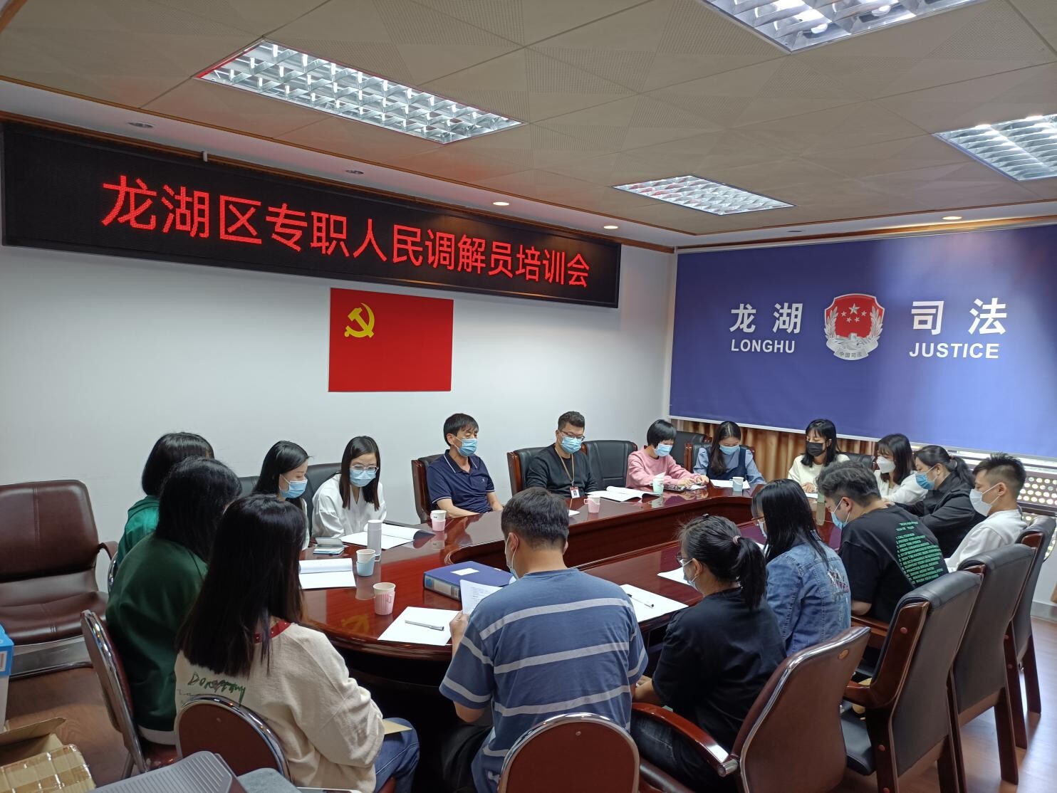 為提高我區專職人民調解員業務能力和整體素質,更好地發揮人民調解工作在維護基層社會穩定中的職能作用,2022年5月18日上午,龍湖區司法局組織開展專職人民調解員培訓。全區專職人民調解員參加了培訓。