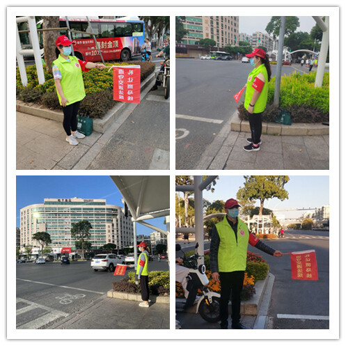 為推動文明交通深入開展,根據區創建辦工作部署,我局積極響應,組織黨員干部在重點路口開展文明交通志愿服務活動。2022年9月9日-10日、10月9日-11日每天上下班高峰期安排1名志愿者,在中山-金環路口協助交警維持交通秩序,志愿者們對來往行人車輛進行耐心勸導,并向過往人群積極宣傳交通安全方面的法律法規,提醒行人不要闖紅燈,對闖紅燈的行人進行口頭提示,幫助行動不便的群眾過馬路,切實開展好文明交通志愿服務活動,扎實當好文明汕頭“宣傳員”。