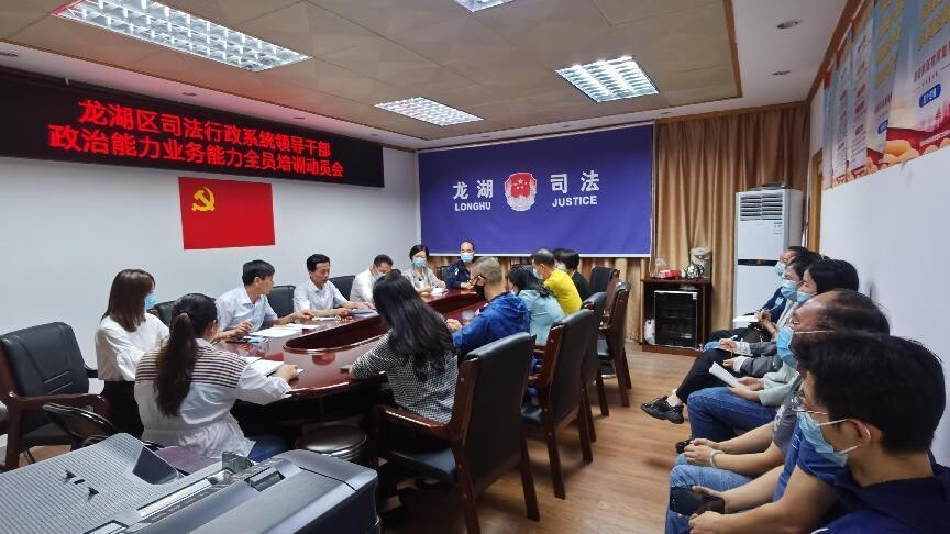 根據《關于印發〈關于開展全區各線條領導干部政治能力業務能力全員培訓的工作方案〉的通知》、《關于印發〈汕頭市司法行政系統領導干部政治能力業務能力全員培訓工作方案〉的通知》等有關文件精神,11月1日,龍湖區司法行政系統領導干部政治能力業務能力全員培訓開班,區司法局黨組書記、局長陳東曉出席開班式并以“加快建設社會主義法治國家 堅定不移走中國特色社會主義法治道路”為題授課。局機關中層以上干部、各直屬事業單位、各司法所負責人參加了開班動員會。