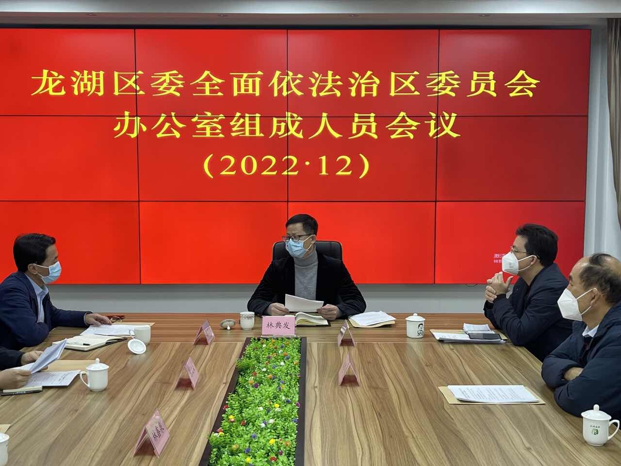 12月23日上午,龍湖區(qū)委政法委書記林典發(fā)主持召開區(qū)委全面依法治區(qū)委員會辦公室組成人員全體會議,會議主要審議法治龍湖建設(shè)規(guī)劃、龍湖區(qū)法治社會建設(shè)實(shí)施綱要(即“一規(guī)劃一綱要”)重要舉措分工方案。區(qū)委依法治區(qū)辦組成人員,區(qū)司法局分管領(lǐng)導(dǎo)、區(qū)委依法治區(qū)辦秘書股、區(qū)司法局法治股負(fù)責(zé)同志出席會議。