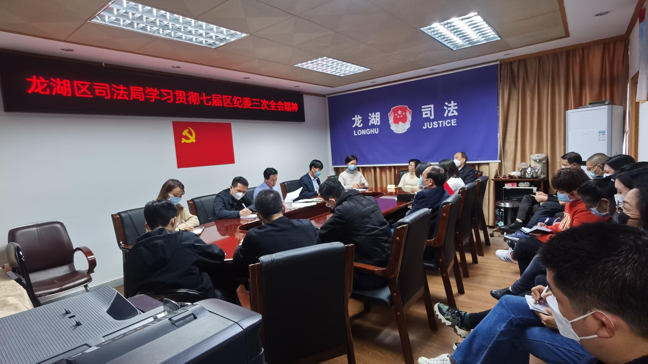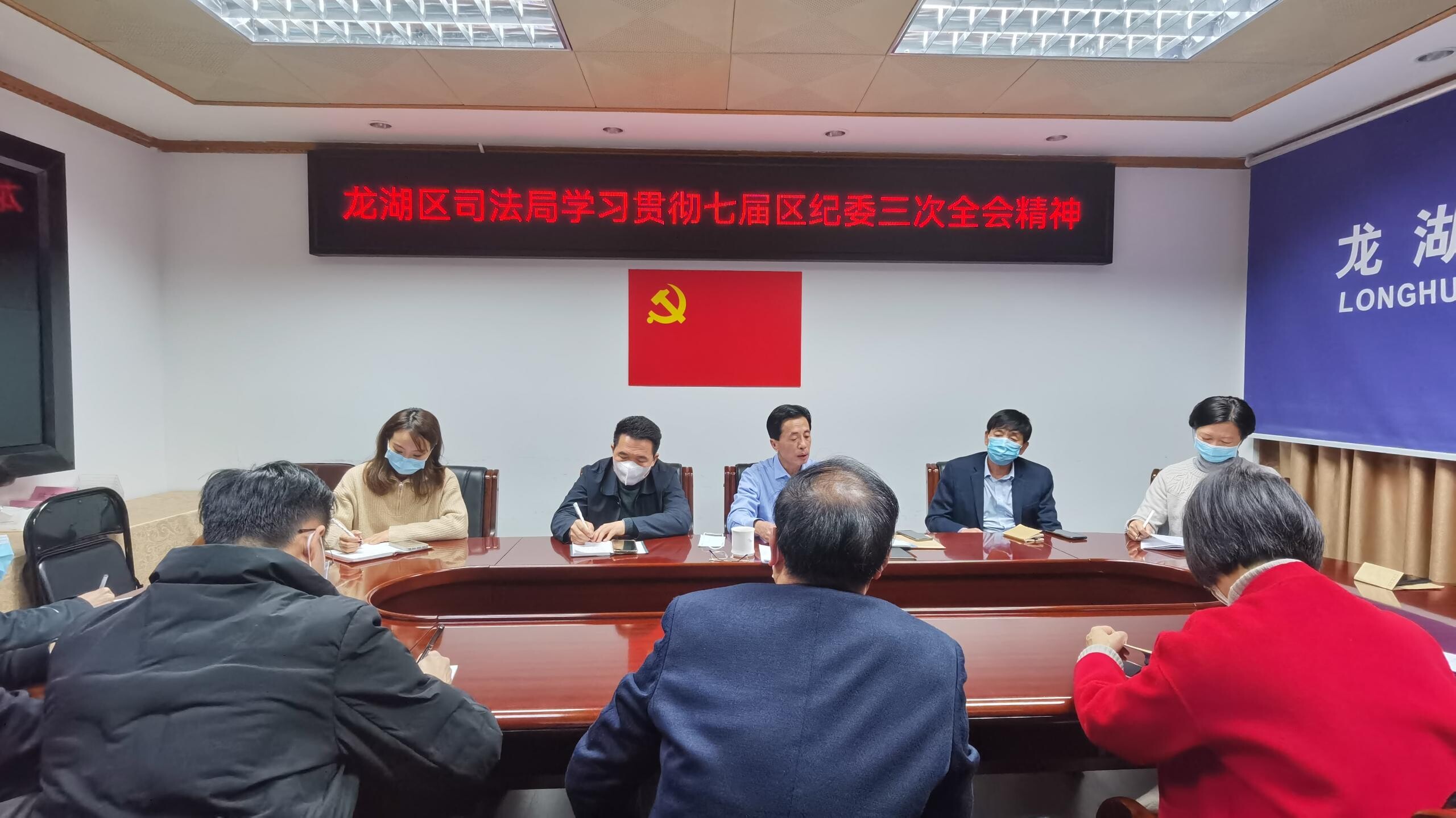 2月17日,龍湖區司法局召開專題會議,傳達學習貫徹區紀委七屆三次全會精神。局黨組書記、局長陳東曉主持會議,局中層以上干部、各直屬事業單位和各司法所負責人參加會議。