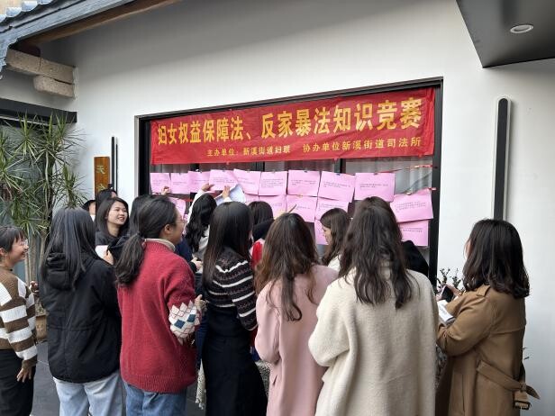 為增強基層婦女工作者對《中華人民共和國婦女權益保障法》及《反家庭暴力法》知識的掌握和理解運用,提高基層婦女的法治意識,促進村居更好地依法開展婦女工作。3月3日,龍湖區司法局新溪司法所聯合新溪街道婦聯舉辦《中華人民共和國婦女權益保障法》及《反家庭暴力法》知識競答活動。