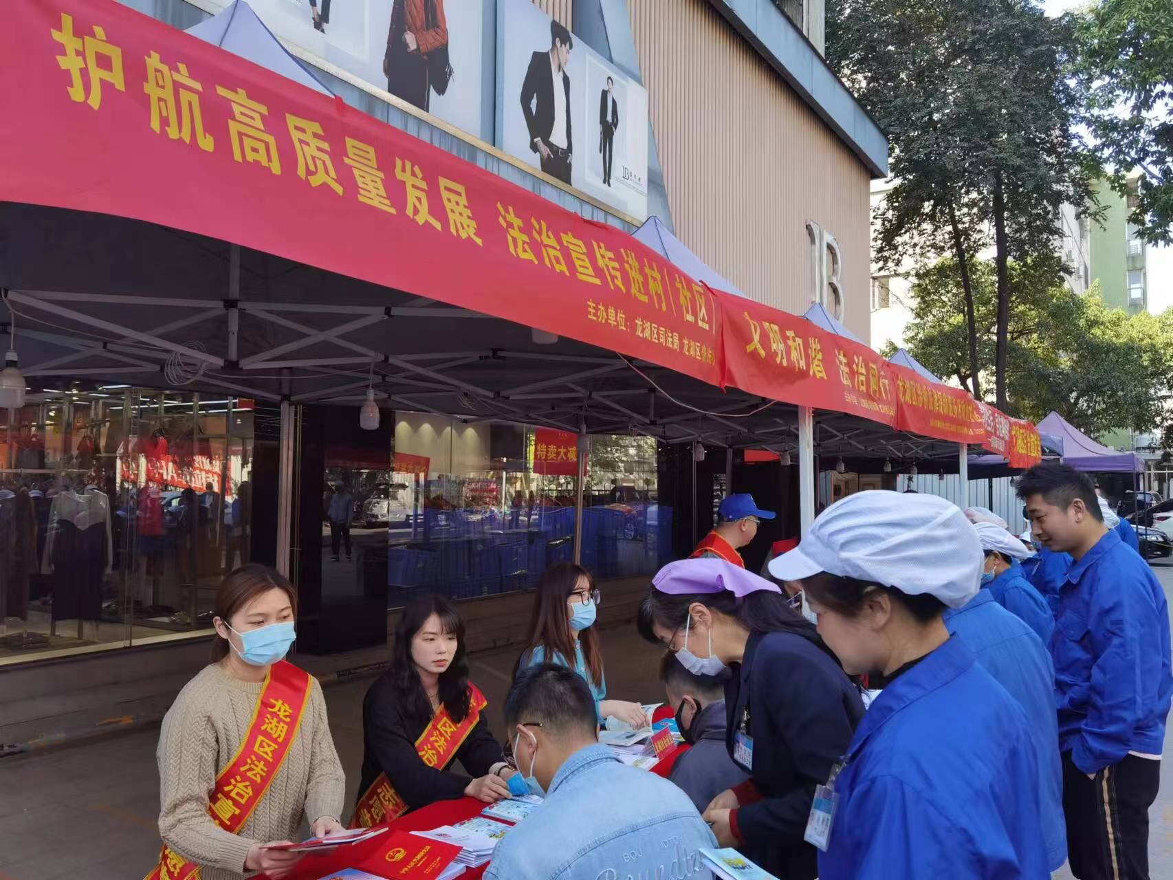 為弘揚法治精神,推進全民法治意識提升,為進一步保護企業合法權益,激發市場主體生產經營積極性,2023年3月10日上午,龍湖區司法局、區普法辦聯合區法援處、公證處、金霞司法所、金霞街道有關部門在金霞街道金陽社區工業廠區開展“護航高質量發展 法治宣傳進社區”、“文明和諧 法治同行 ”主題法治宣傳活動,護航高質量發展,助力優化法治營商環境。