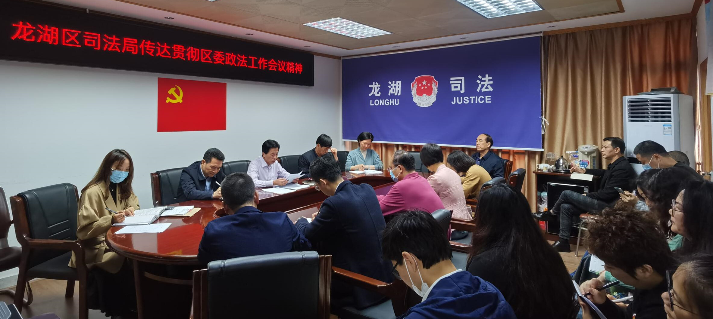 會議要求,一要提高政治站位,堅定不移貫徹習近平法治思想。要深入學習貫徹落實中央、省委、市委及區委政法工作會議精神,全面提升依法治區水平,奮力推進新時代新征程司法行政工作現代化,為譜寫龍湖高質量發展新篇章提供法治保障和法律服務。二要堅持守正創新,奮力推進新時代司法行政工作。要立足新使命、新要求,立足工作職責,圍繞全面貫徹落實黨的二十大精神這“一條主線”,緊盯“高質量發展”目標,充分發揮法治保障和法律服務職能作用,做好合法性審查,加大對關系群眾切身利益的重點領域執法力度,持續優化法治化營商環境。三要主動服務大局,提升依法治理能力水平。全系統要踔厲奮進真抓實干,迎難而上擔當有為,在全面依法治區、法治政府建設、深化行政復議應訴、推進公共法律服務、加強社區矯正工作、開展法治宣傳教育、促進矛盾糾紛調處、優化法律援助工作等方面上下足功夫,努力建設更高水平的平安龍湖、法治龍湖。四要突出忠誠履責,強化司法行政隊伍建設。堅定不移貫徹全面從嚴管黨治黨,鍥而不舍落實中央八項規定及其實施細則精神,一體糾治“四風”問題,務實工作舉措,提振精氣神,不斷更新工作方法和工作模式,努力鍛造一支忠誠、干凈、擔當的司法行政隊伍,為高質量發展提供堅強保障。