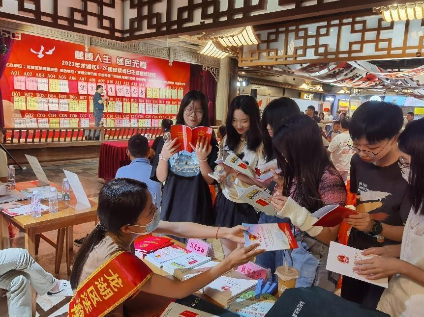 為進一步加強禁毒宣傳和毒品預防教育工作,廣泛宣傳普及禁毒知識,增強群眾防毒、拒毒意識和能力,號召群眾積極抵制毒品,在第36個“6.26”國際禁毒日到來之際,6月24日,由龍湖區禁毒辦主辦、龍湖公安分局承辦、龍湖區普法辦等單位協辦,在汕頭萬象城六樓里巷區域開展以“健康人生綠色無毒”為主題的禁毒宣傳教育活動。
