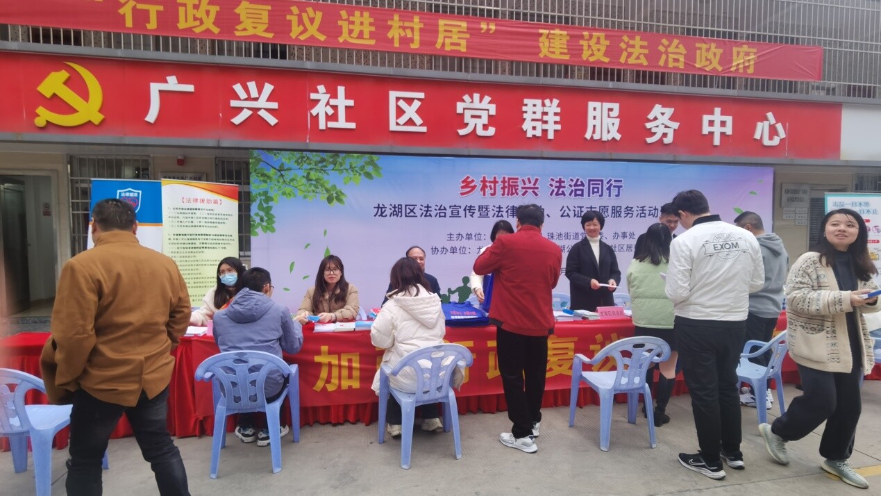 為扎實(shí)推進(jìn)法治鄉(xiāng)村建設(shè),更好地為鄉(xiāng)村振興提供法律服務(wù)和法治保障,切實(shí)提高廣大群眾對(duì)法律援助和公證辦證的知曉率, 12月20日上午,龍湖區(qū)司法局在龍湖區(qū)廣興村開展“鄉(xiāng)村振興 法治同行”--龍湖區(qū)法治宣傳暨法律援助、公證志愿服務(wù)活動(dòng)。