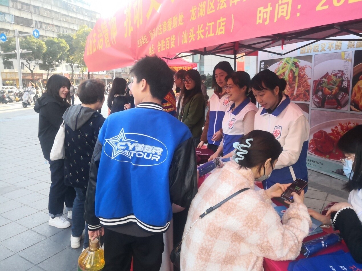 為持續推進法治建設,讓宣傳接地氣、潤人心、見成效,為“百千萬工程”及創建文明城市注入持久的法治動能,2月5日下午,龍湖區法援處在合勝百貨(汕頭長江店)開展“弘揚法治精神 推動文明城市創建”法律援助宣傳志愿服務活動,市法律援助處到場參與宣傳。