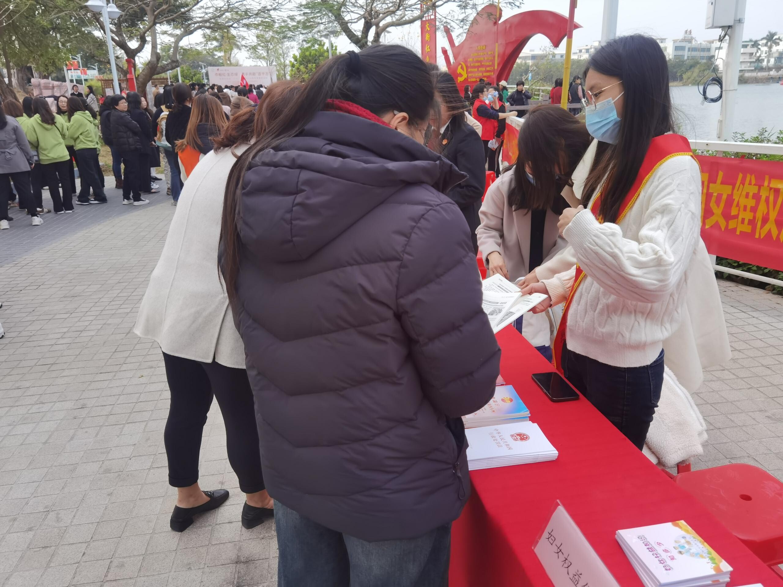3月4日上午,在“三八”國際婦女節114周年來臨之際,龍湖區在龍華街道大衙村紅色渡口開展“巾幗紅·生態綠攜手共助‘百千萬工程’”活動。借此契機,龍湖區普法辦在活動現場擺攤設點開展保障婦女權益送法進鄉村普法宣傳活動,進一步增強廣大婦女的法律意識和法治觀念,引領廣大婦女尊法、守法、學法、用法。