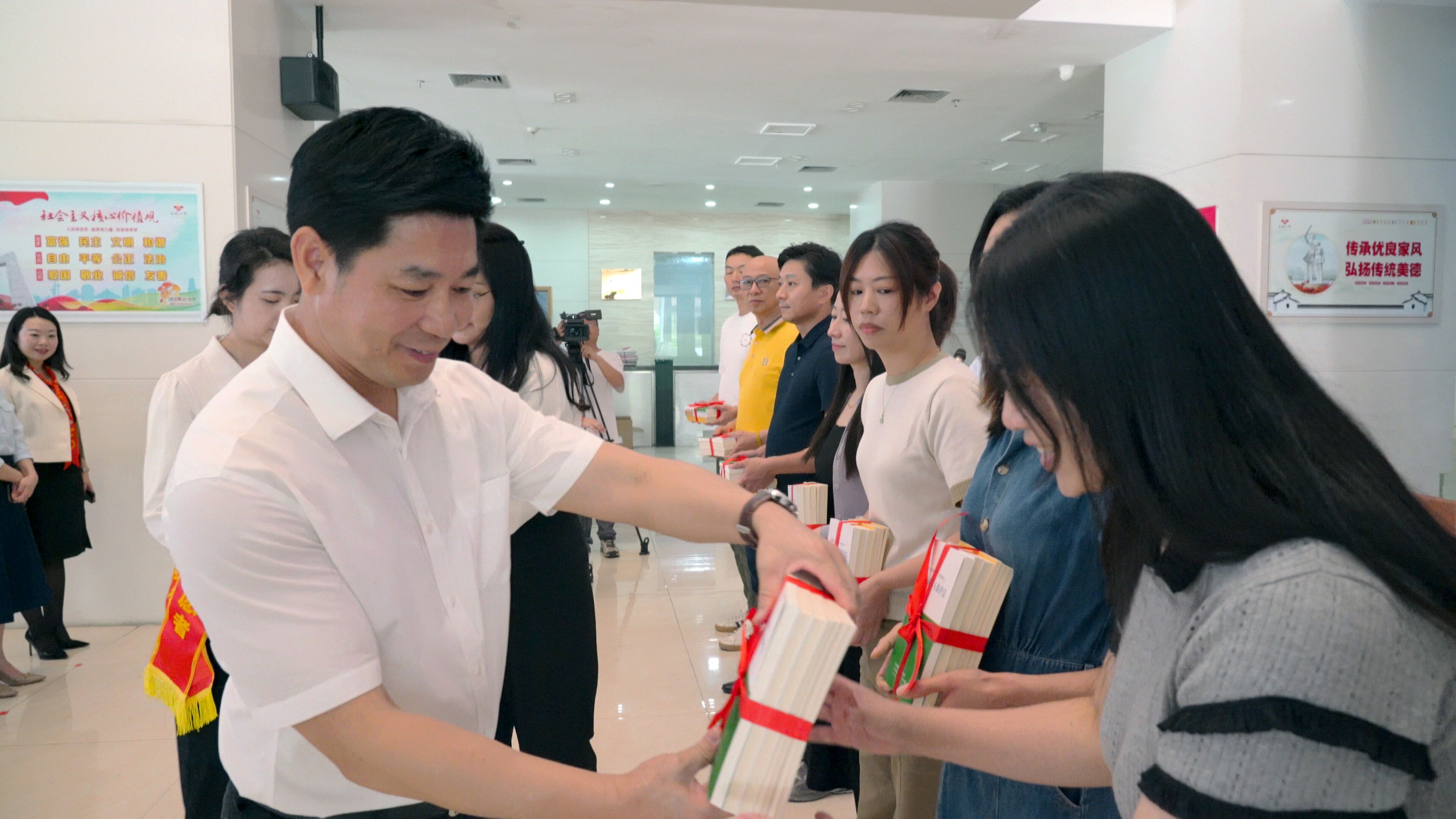開幕式活動由龍湖區司法局黨組書記、局長、區普法辦主任陳東曉同志主持。活動現場,由龍湖區委副書記、區委政法委書記陳澤波同志和市委政法委三級調研員陳明鋒同志分別為家長和學生代表贈送《家風家訓與政德教育》《扣好人生第一粒扣子》《禁毒反詐潮語歌謠》《良言百讀》《圖釋未成年人保護法》等普法手冊。