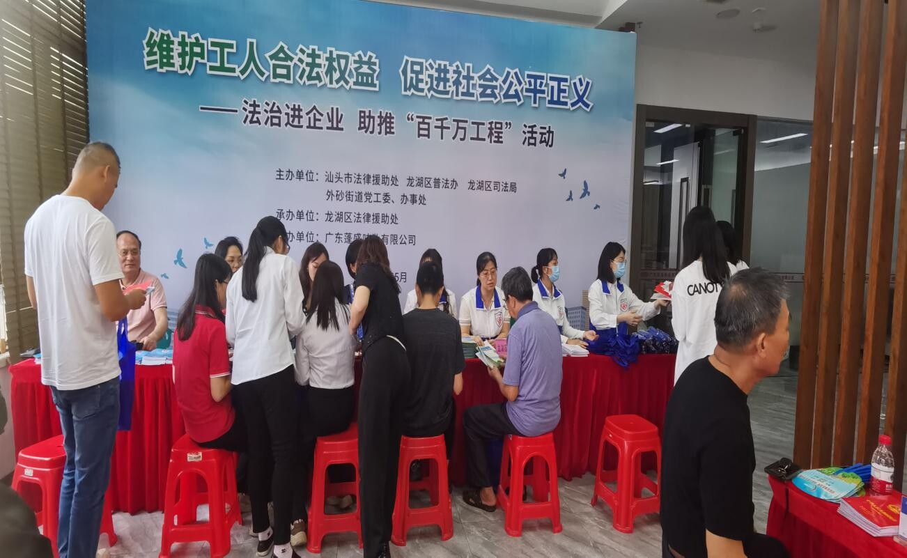 為進(jìn)一步發(fā)揮司法行政法治保障和法律服務(wù)職能,全力為企業(yè)生產(chǎn)經(jīng)營提供全方位的法律保障,提升廣大企業(yè)員工對(duì)《中華人民共和國法律援助法》的了解,進(jìn)一步擴(kuò)大法律援助覆蓋面,賦能“百千萬工程”,5月24日上午,汕頭市法律援助處、龍湖區(qū)普法辦、龍湖區(qū)司法局、外砂街道黨工委、辦事處、龍湖區(qū)法律援助處等多個(gè)部門共同走進(jìn)廣東蓬盛味業(yè)有限公司,開展法律援助進(jìn)企業(yè)普法宣傳活動(dòng)。