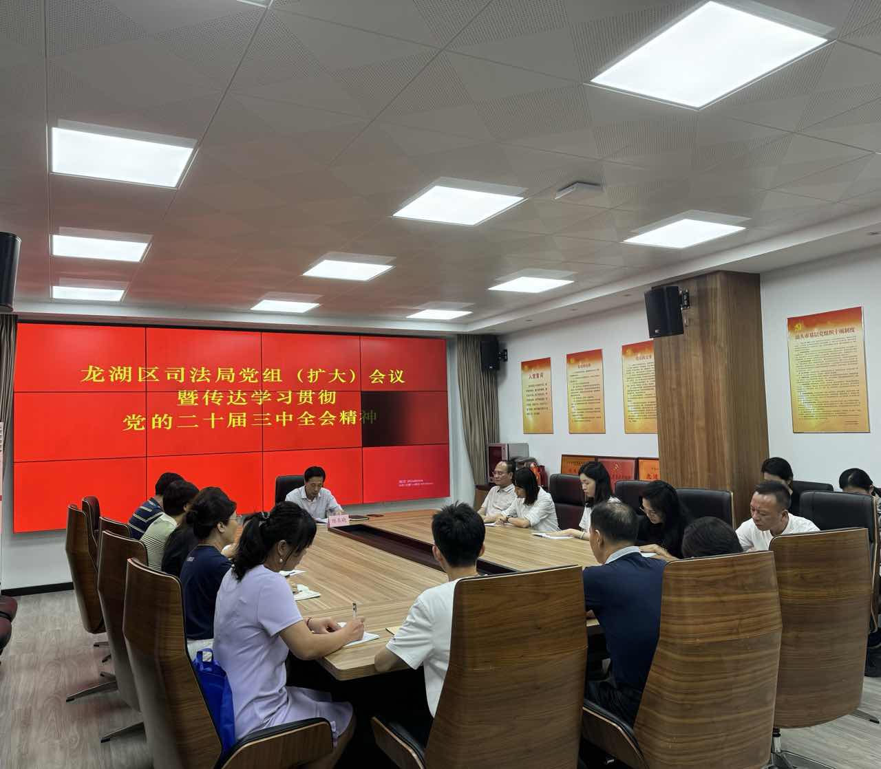 7月26日,龍湖區司法局召開黨組(擴大)會議及司法行政系統全體干部大會,專題傳達學習貫徹習近平總書記在黨的二十屆三中全會上的重要講話和全會精神,以及省市區干部大會精神,研究貫徹落實意見。
