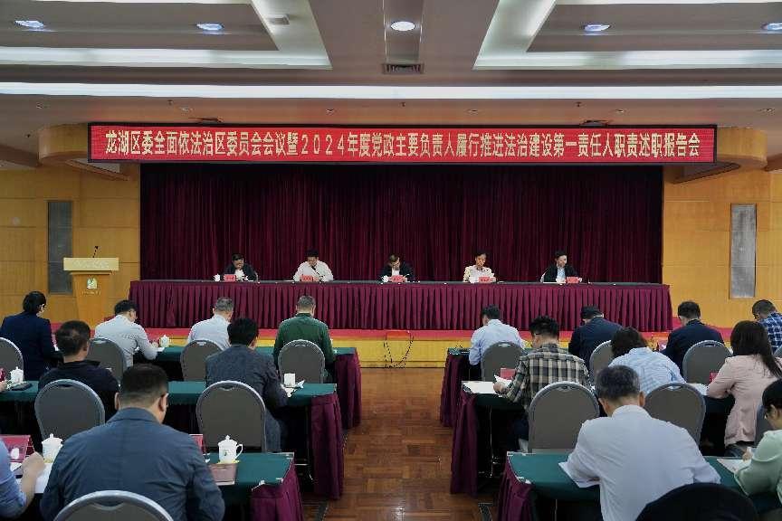 4月9日,龍湖區委全面依法治區委員會召開區委全面依法治區委員會會議暨2024年度黨政主要負責人履行推進法治建設第一責任人職責述職報告會。區委副書記、區長、區委全面依法治區委員會副主任黃曉歡出席會議并講話,區人大常委會主任、區委全面依法治區委員會副主任謝宋彪等領導同志參加會議。會議由區委副書記、政法委書記、區委全面依法治區委員會副主任、區委依法治區辦主任陳澤波主持。