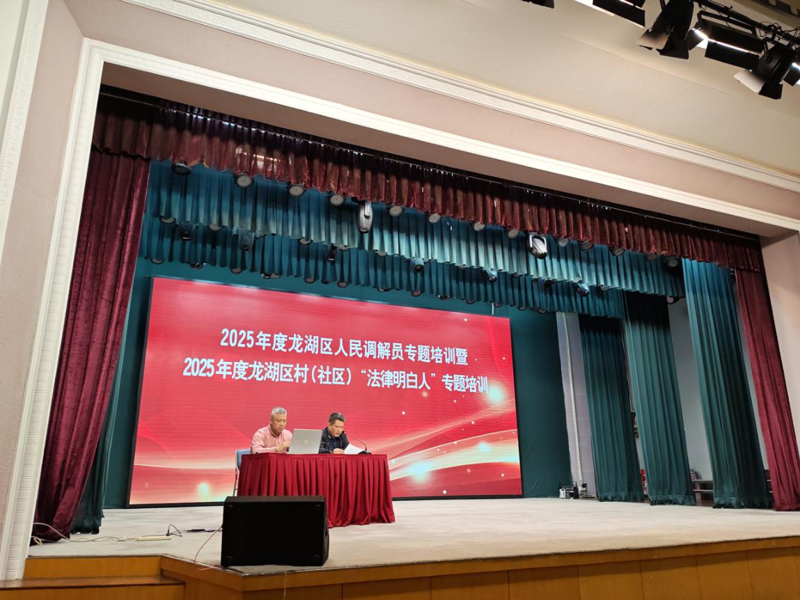 為持續提升龍湖區人民調解員、村(社區)法律明白人隊伍建設水平,龍湖區司法局積極探索司法行政業務培訓新思路,找準人民調解與普法宣傳業務工作“契合點”、培訓內容“公約數”,10月24日,在龍湖區翰苑會堂組織開展2025年度龍湖區人民調解員專題培訓暨2025年度龍湖區村(社區)“法律明白人”專題培訓。
