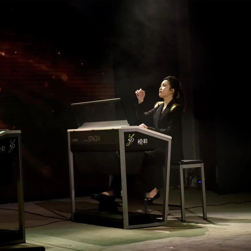 在精彩的嘉賓表演之后,林桐宇博士研究生帶來了她作曲的原創(chuàng)作品《期望》。作品是在電子管風(fēng)琴上創(chuàng)作的世界音樂風(fēng)格作品,以樂器中的一些電子化音色:pad和合成器lead作為演奏的主體,打擊樂也是作者創(chuàng)作編配的,運(yùn)用了電子管風(fēng)琴的特性。這是林桐宇博士研究生在作曲學(xué)科的學(xué)習(xí)生涯中的全新的嘗試,是她對自己熱愛的專業(yè)懷抱的熱情和期望。