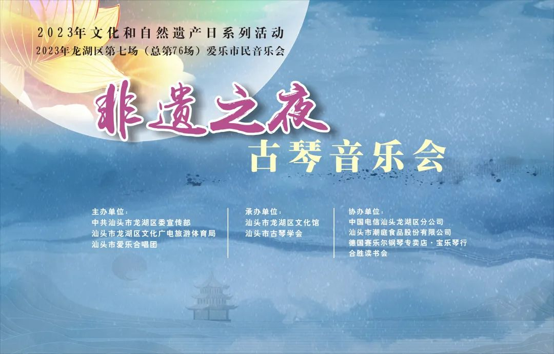 今年龍湖區第七場(總第76場)愛樂市民音樂會將于6月11日晚8點在龍湖翰苑劇場上演,汕頭市古琴學會老中青少四代人將聯袂演奏多首古琴名曲。關注本場音樂會,您將欣賞到中國古代十大古琴曲名作《醉漁唱晚》《梅花三弄》、近三百年來流傳最廣的中國古琴名曲之一《平沙落雁》、根據司馬相如和卓文君的愛情故事而作的《鳳求凰》等經典作品。