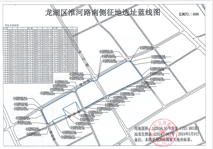 一、項目名稱:龍湖區淮河路南側集體土地征收項目。